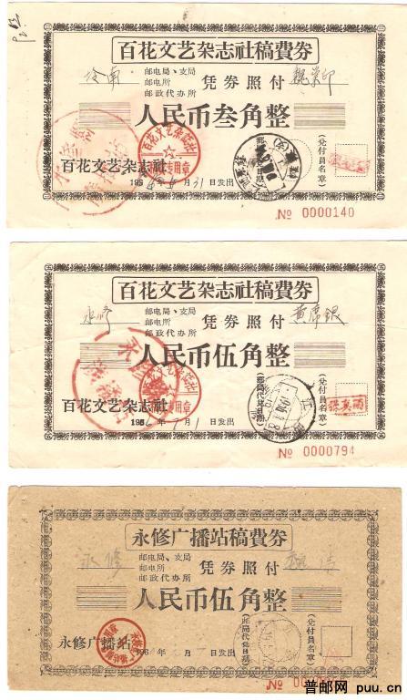 百花、永修稿费券
