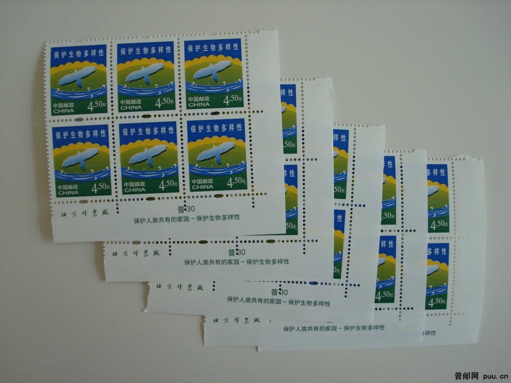 普30保护生物多样性4.5元 右下双铭6方联5个