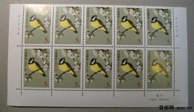 普31 中国鸟5元10方连含厂铭、双铭四方联各一个