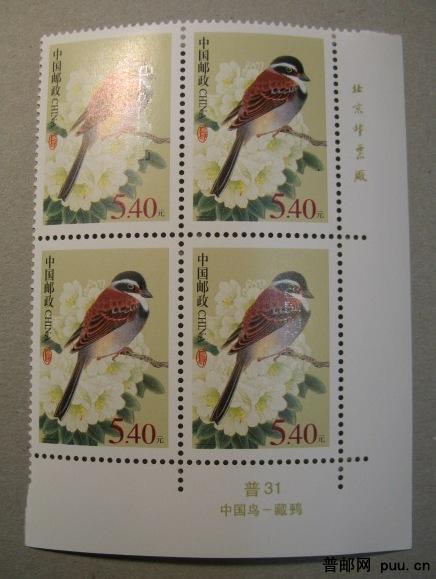 普31 中国鸟5.4元双铭四方联一件