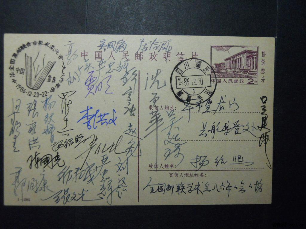 中华全国集邮联合会学术委员会1986年会全体学术委员签名邮资片