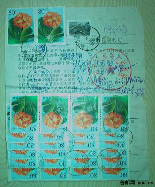 贴数枚编年君子兰票的包果单