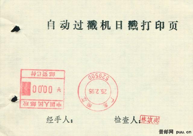广东阳江双圈邮资机打印内页