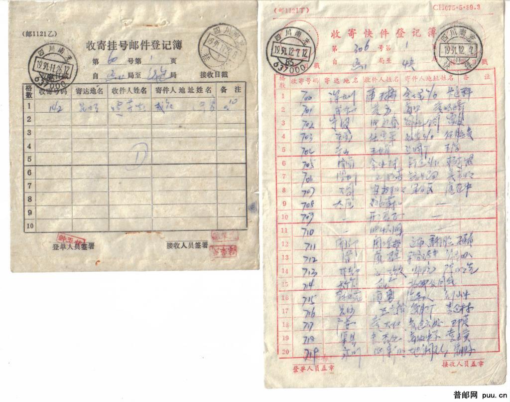 收寄快件、挂号邮件登记簿2件