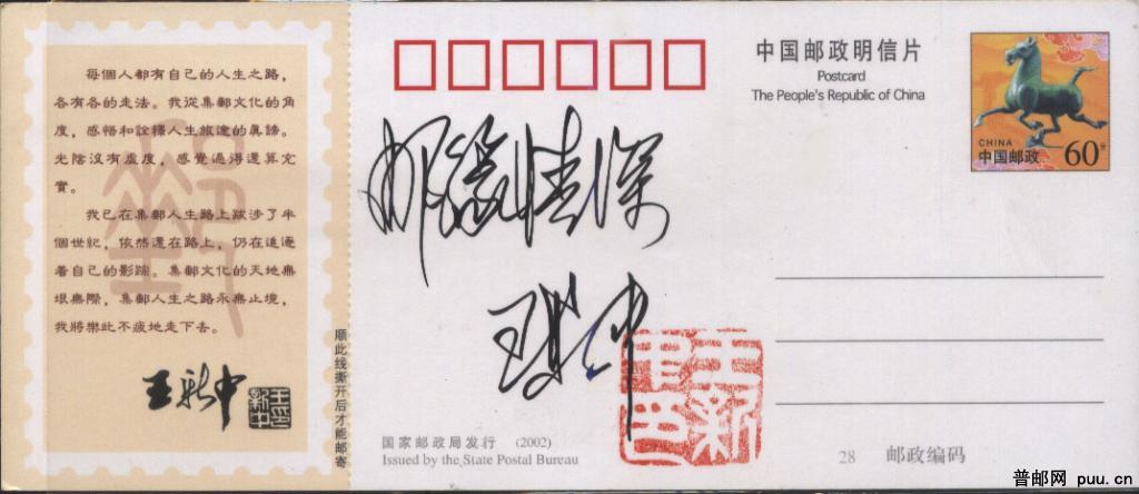 中华集邮联副会长王新中藏书票-----马踏飞燕邮资加印片