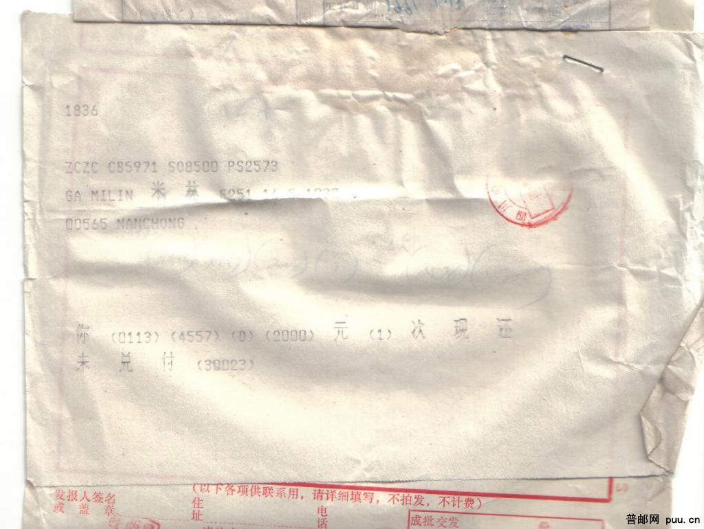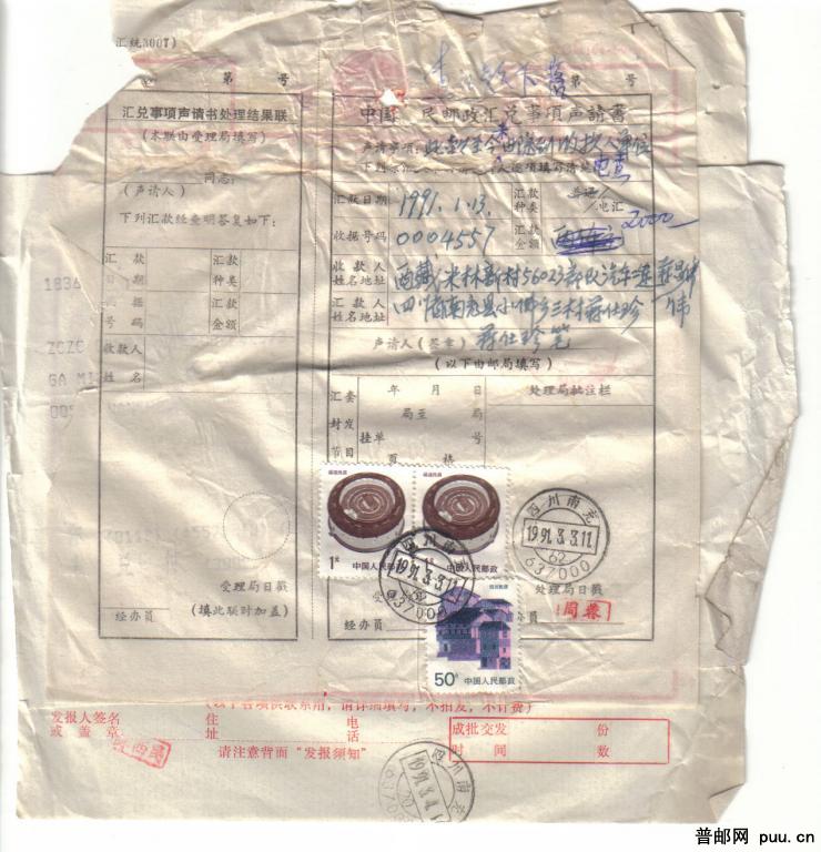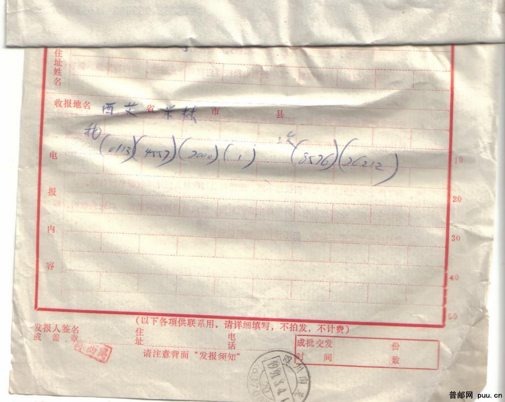 邮政汇兑事项声请书及来去电报原件共3件