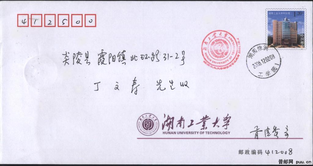 湖南工业大学科技楼邮资图普资首日原地实寄封