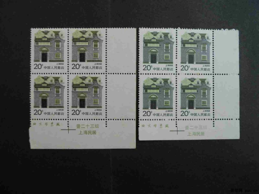R23 20c 两种版式 两种纸型 直角边带厂名 票名 方连二件