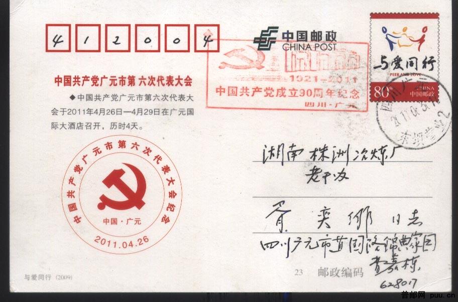 原地实寄‘与爱同行’邮资明信片