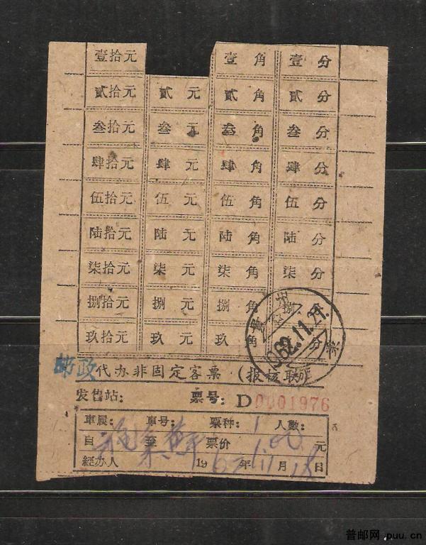 62年邮政车票盖双弓戳