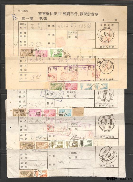 普1、4、5、7邮政单据5件