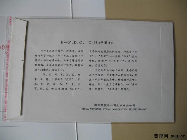 T58第一轮生肖鸡北京公司首日封一枚