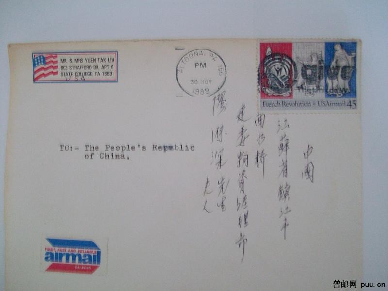美国邮票实寄封