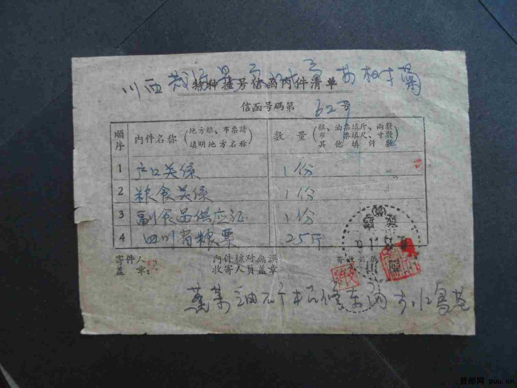 特种挂号信函内件清单
