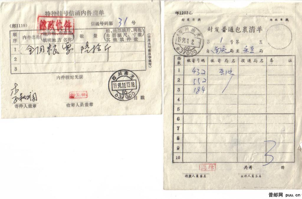 邮政清单6种