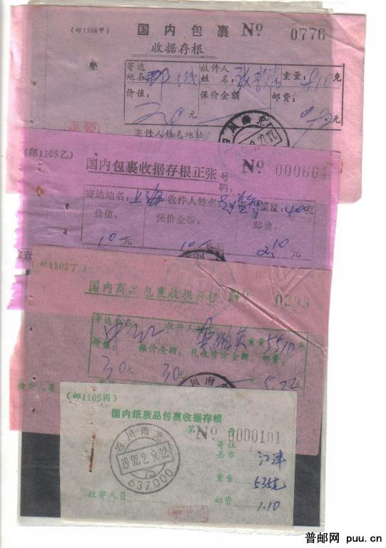 邮政包裹单收据