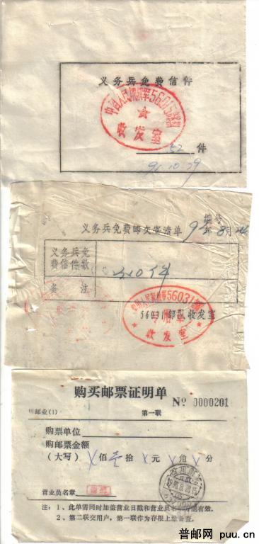 免费邮件清单,购邮票证明单3种