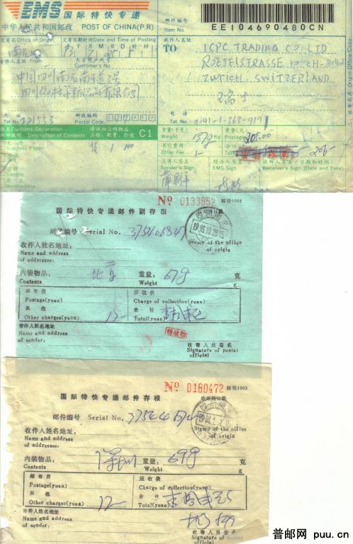 国际快递存根3种