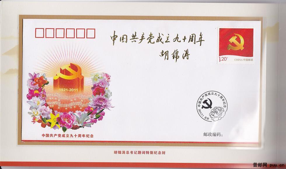 2011-16中国共产党成立90周年胡锦涛题词邮折