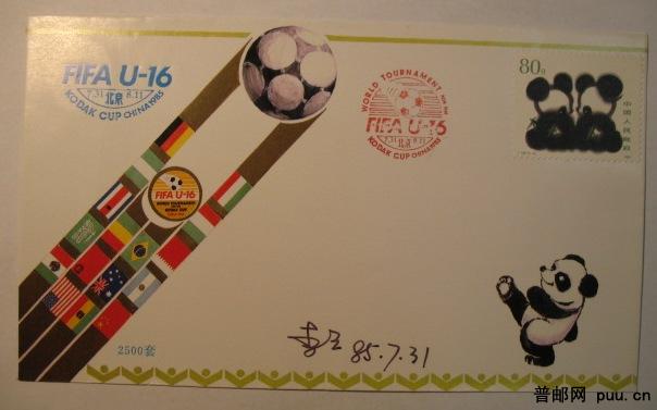 85年国际足联16岁下竞赛纪念封一套4枚设计者签名