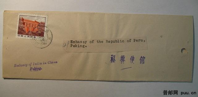 1973年北京外国使馆间互寄印刷品贴文普1.5分裸寄封一枚