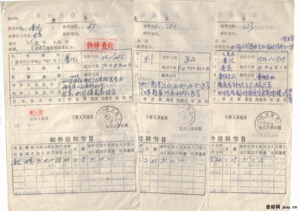 邮政业务查询单3种