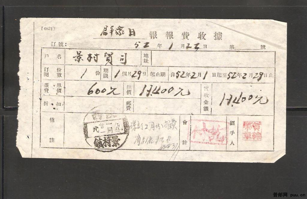早期邮政单据小地名腰鼓戳一件