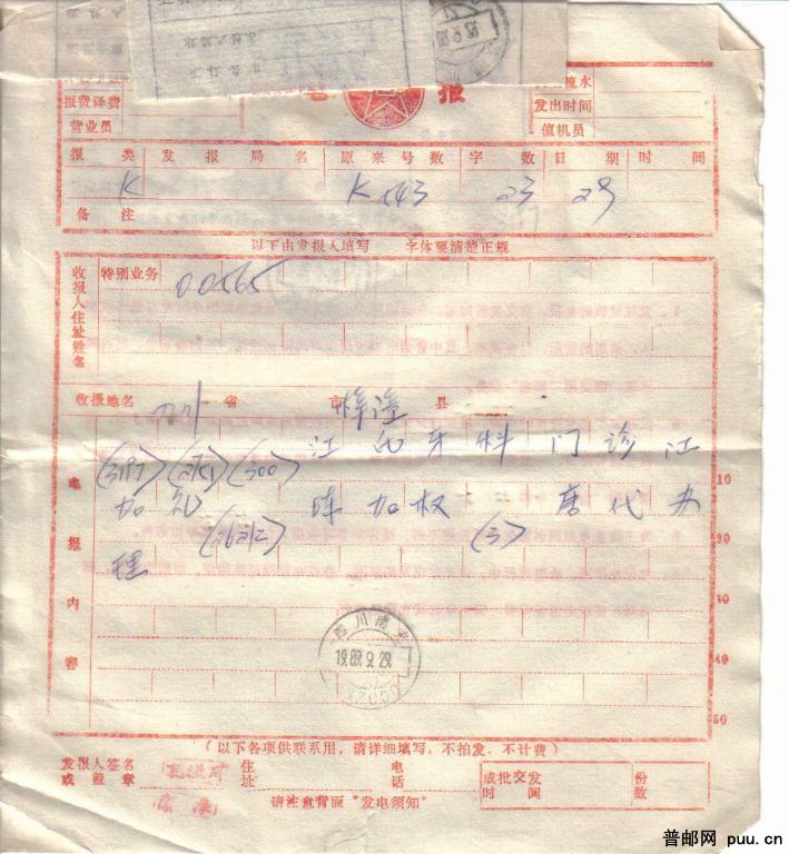 电汇单、收据及电报一套