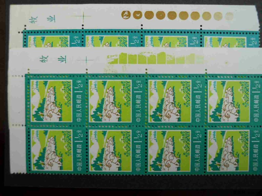 R18 1.5c双边 带票名 两种不同色标 八方联两件