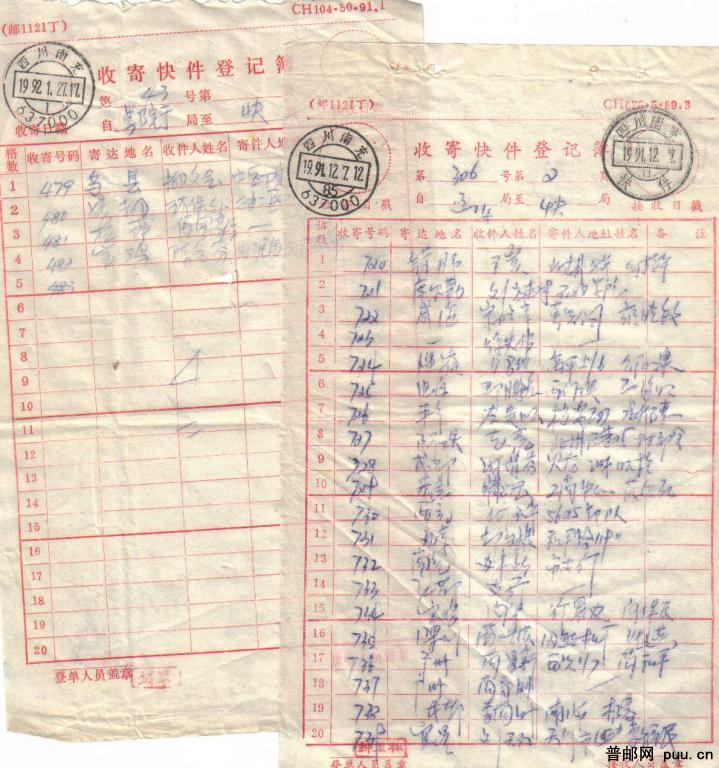 收寄邮件、快件登记簿5种