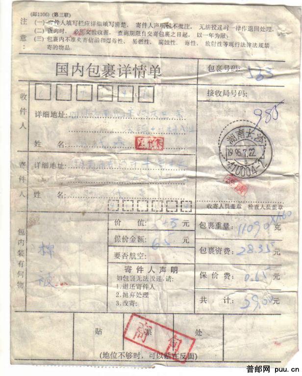 贴93-5、95-5票单1件