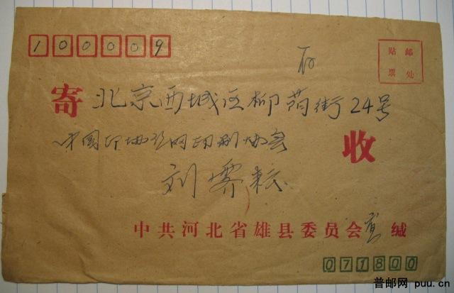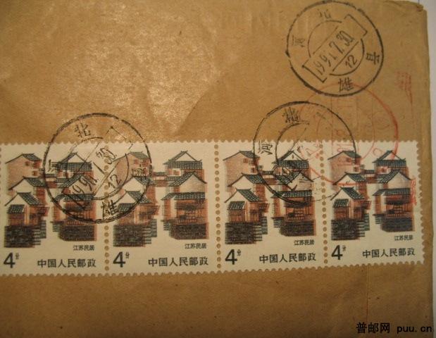 1991年河北雄县级北京平信(4分江苏民居套色移位)