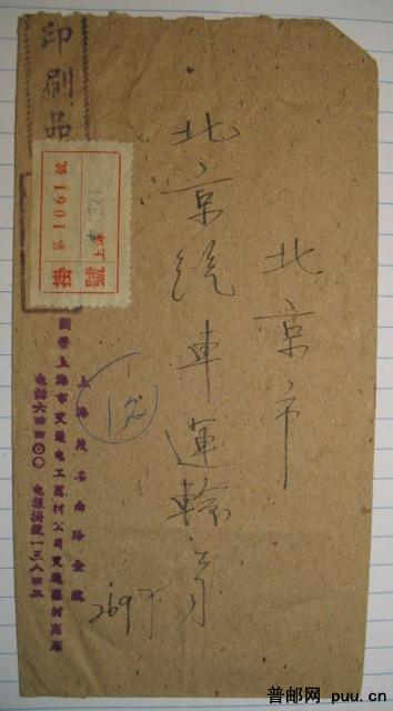 1957年9月上海寄北京印刷品挂号实寄封