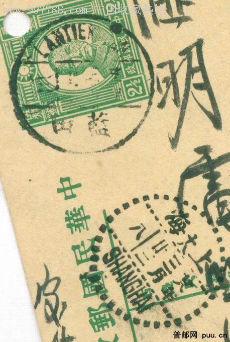 民国孙像2分半邮资明信片陕西蓝田寄上海