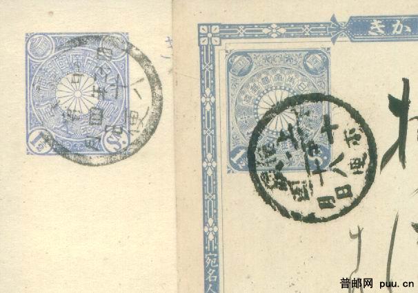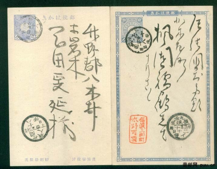 日本 菊 邮资明信片1899年 有框无框不同2枚 实寄双