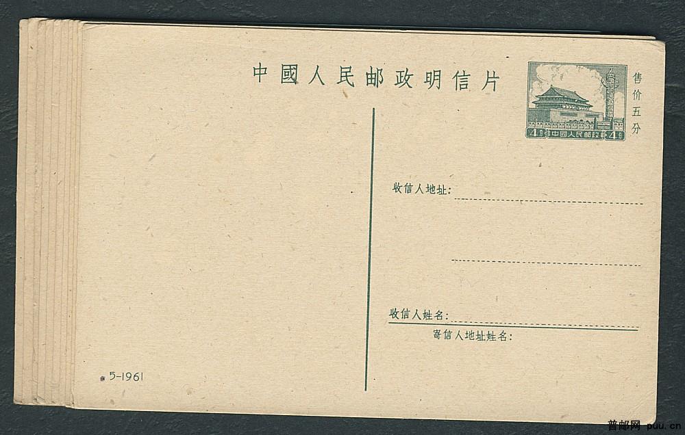 10枚普9型天安门邮资明信片5-1961