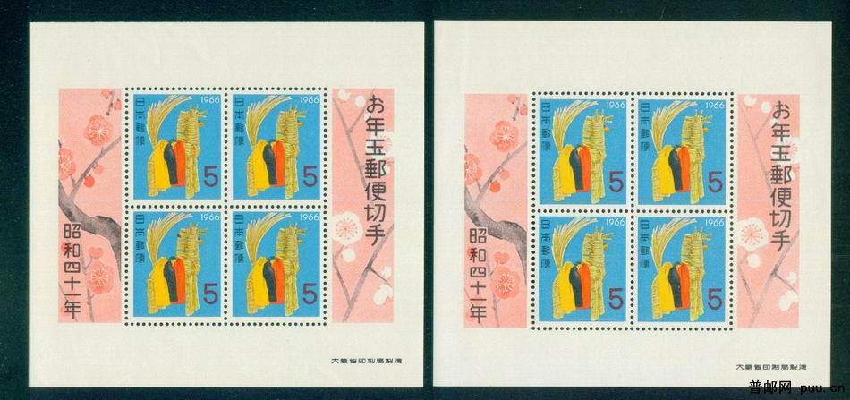 日本贺年生肖小型张 未使用 1966年--- 马 2枚