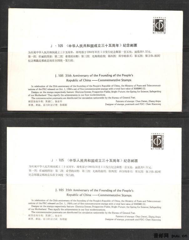 J105首日封1套