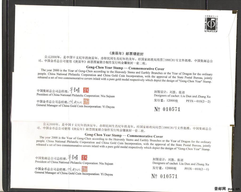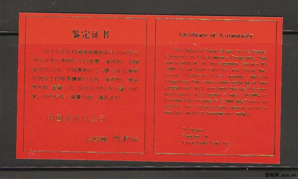 总公司2轮龙的(纯金3.2克)镶嵌拜年封一套
