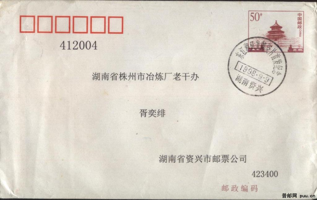 实寄天坛邮资图普封
