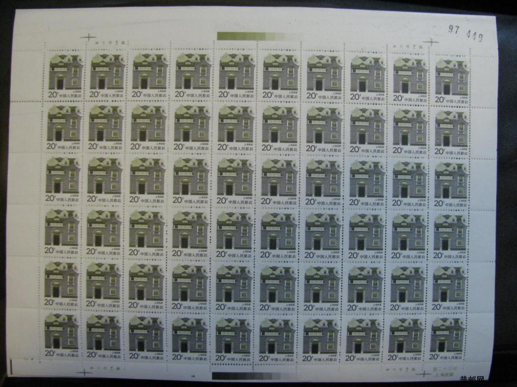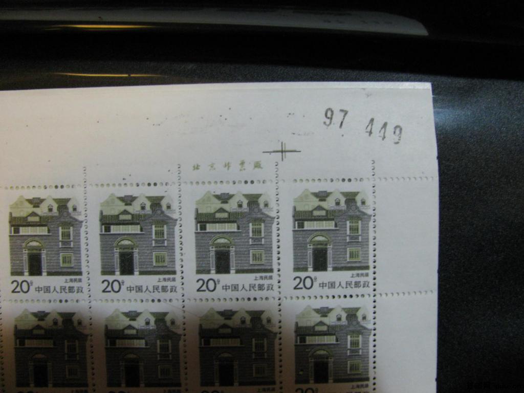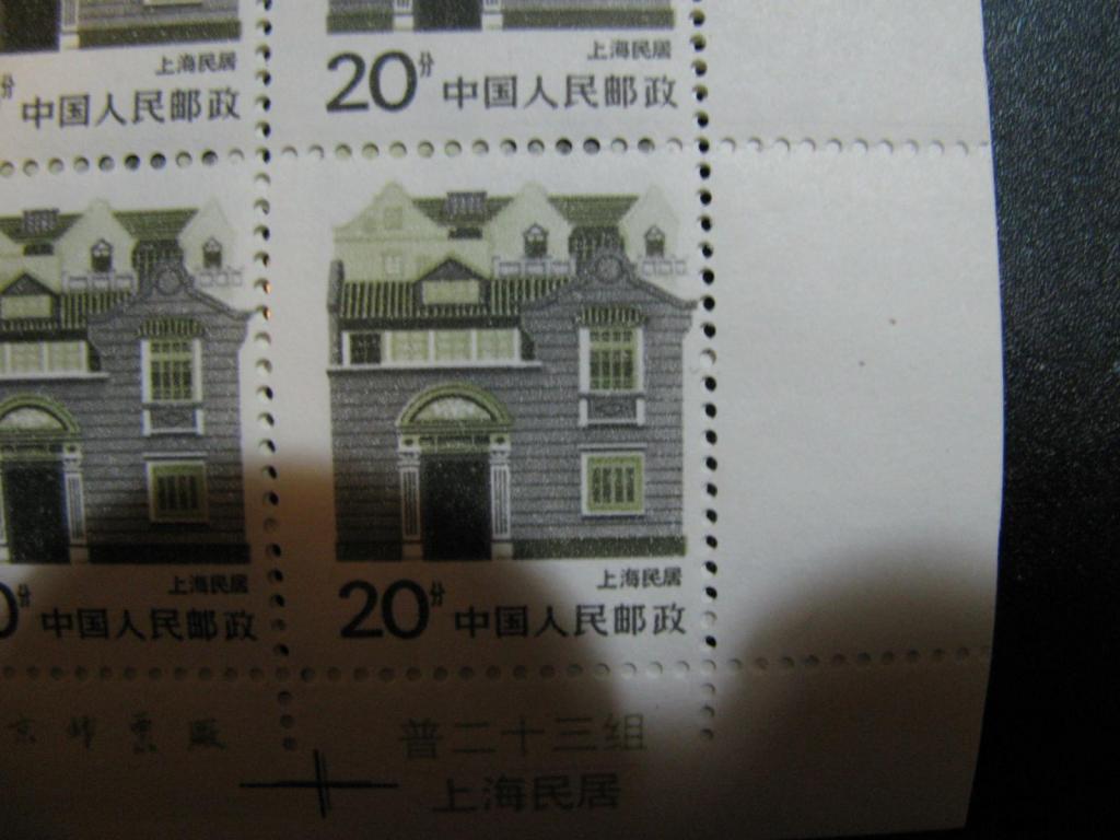 普23民居-20分上海民居“倒大M”版整版右上格印刷版号在右上角带齿孔入图整版