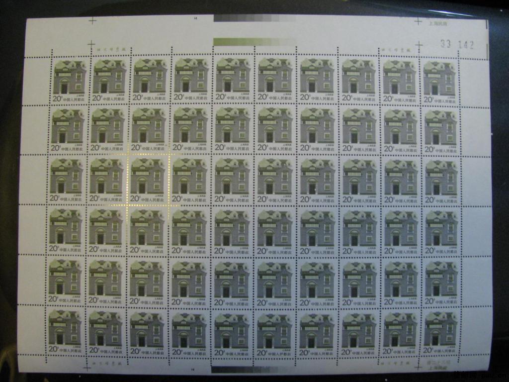 普23民居-20分上海民居“倒小M”版左下格裁切移位带左上格标记整版