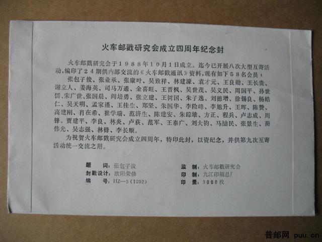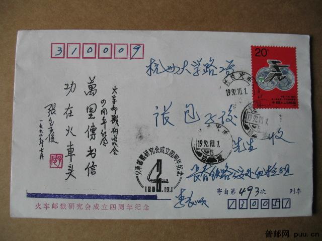 1992年“长白火车”火车邮戳研究会成立纪念封寄张包先生