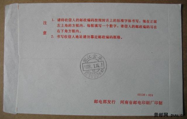1996年“沪杭衢火车(杭州)7”储墨戳销印封(载体箭楼封)