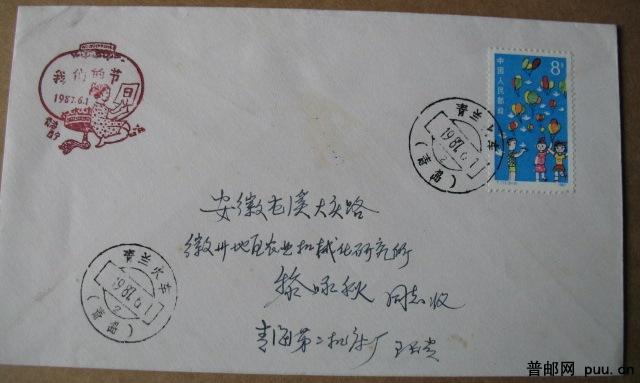 1987年T117火车戳首日封“青兰火车(青岛)”