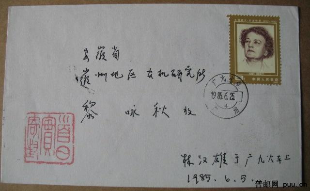 J112(3-1)销火车戳首日实寄封“广九火车(广州)”
