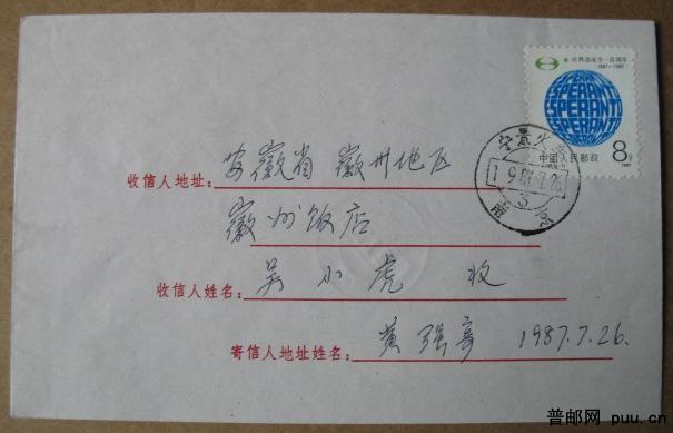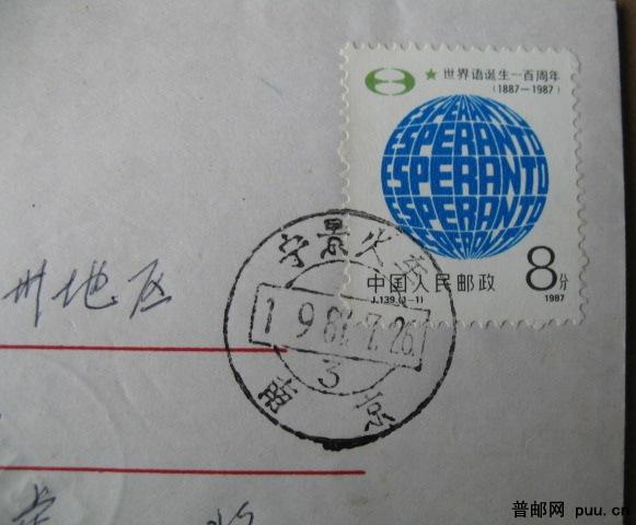 1987年J129世界语销火车戳首日实寄封“宁景火车(南京)”