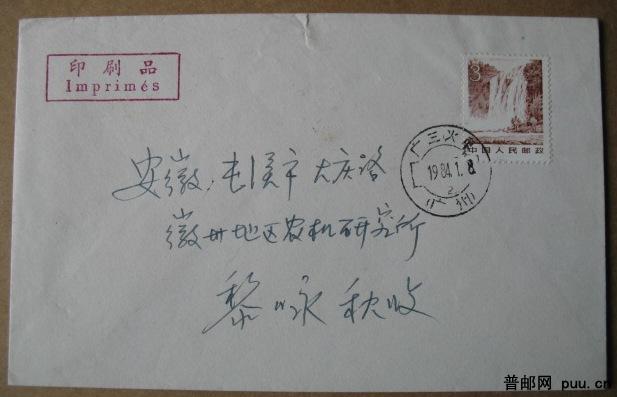1984年“广三火车(广州)”火车戳印刷品实寄封