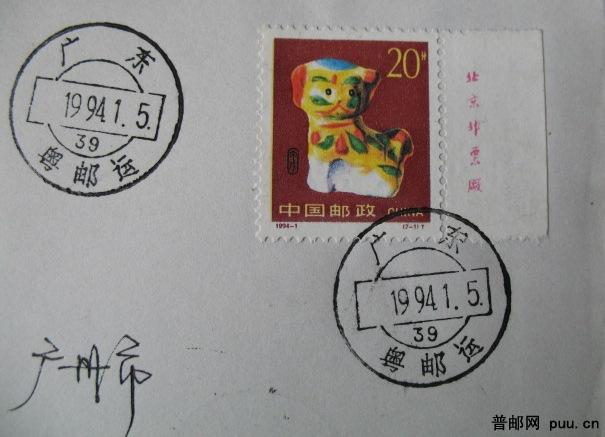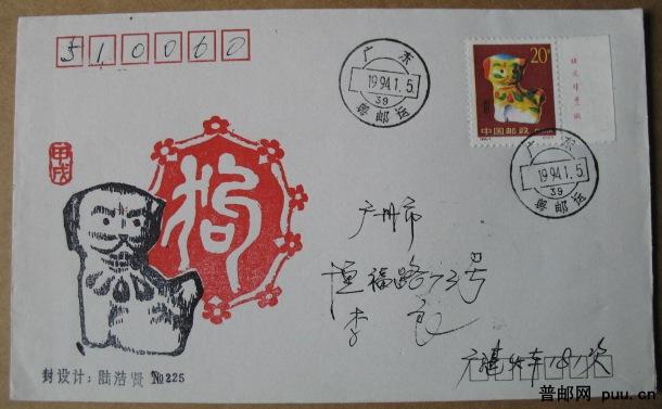 1994年生肖票销火车戳首日实寄封“广东粤邮运”