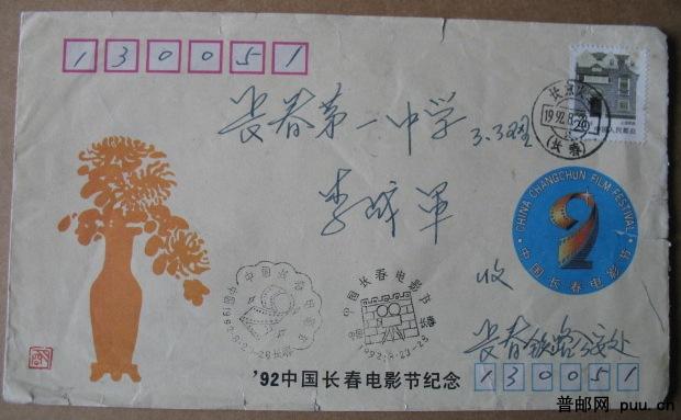 1992年“长京火车(长春)”火车戳长春电影节纪念封